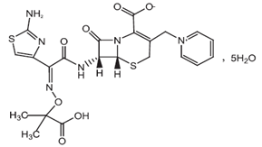 化學(xué)名稱(chēng):(6R,7R)-7-[[(2-氨基-4-噻唑基)-[(l-羧基-1-甲基乙氧基)亞氨基]乙酰基]氨基]-2-羧基-8-氧代-5-硫雜-1-氮雜雙環(huán)[4.2.0]辛-2-烯-3-甲基吡啶鎓內(nèi)鹽五水合物